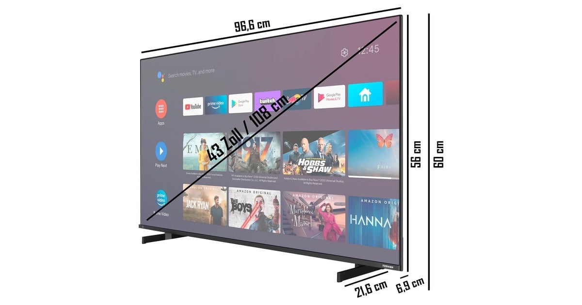 Der Toshiba 43UA5D63DGY ist ein brillanter AndroidTV, der sich durch mit seiner UltraHD Auflösung (3.840 x 2.160 Pixel) und der TRU Picture Engine von der Masse abhebt. Die Engine skaliert alle Inhalte auf eine optimale Darstellung und passt das Bild immer ideal an das an, was gerade auf dem Fernseher zu sehen ist. HDR und Dolby VIsion sorgen für eindrucksvolle Kontraste und eine noch höhere Helligkeit, die jedes Detail noch faszinierender macht. Um dem Bild gerecht zu werden, ist auch der Sound auf Heimkinogefühl ausgelegt: Die 20 Watt starken Stereo Lautsprechern mit Dolby Atmos und Sound by Onkyo erzeugen die ideale Kulisse für alle Inhalte – von Musik bis hin zu Blockbustern. Als AndroidTV verfügt der 43UA5D63DGY nicht nur über eine intuitive Benutzeroberfläche sondern auch einen integrierten Chromecast, mit dem das Streamen sämtlicher Inhalte noch einfacher wird.Art.-Nr.: 1897218